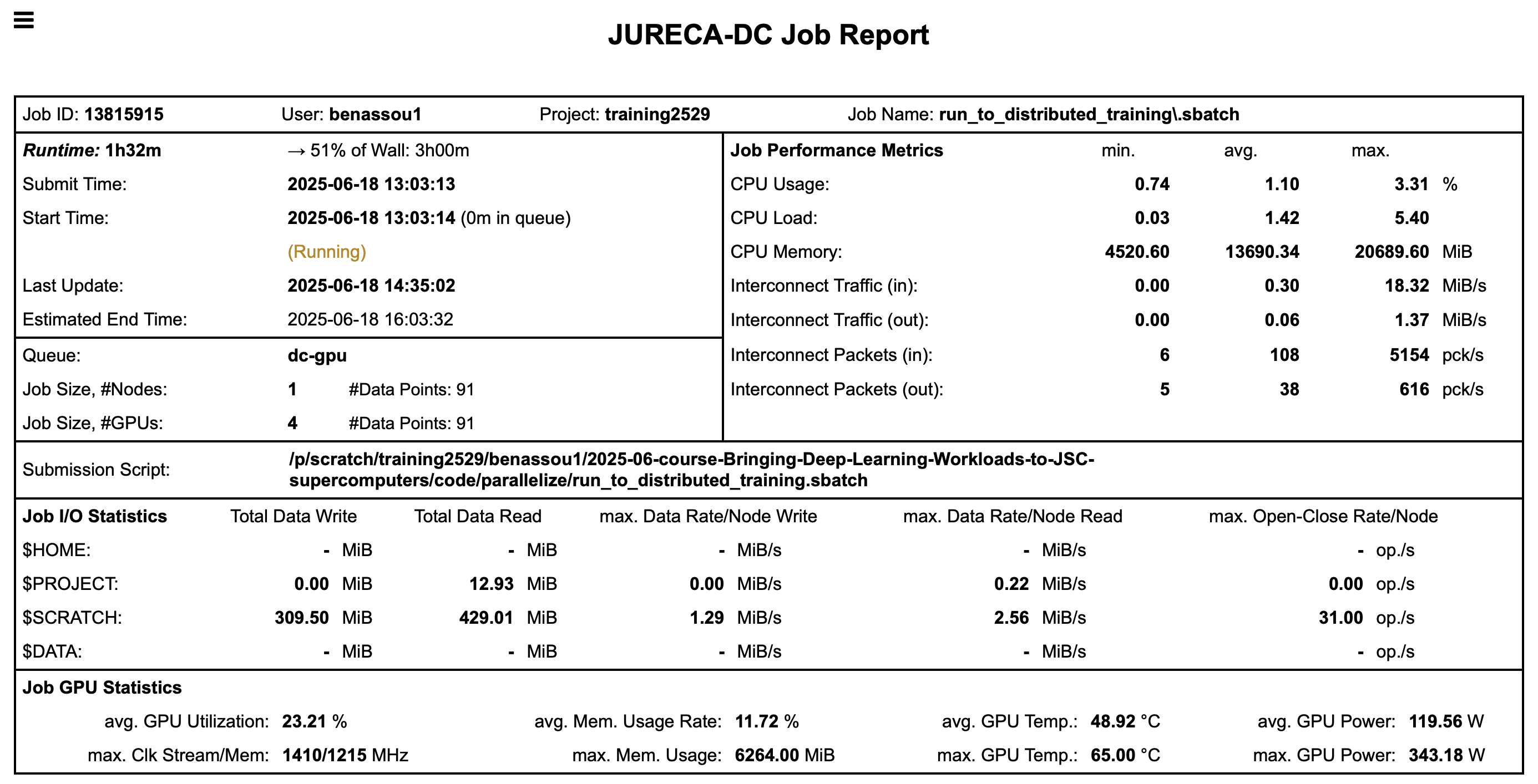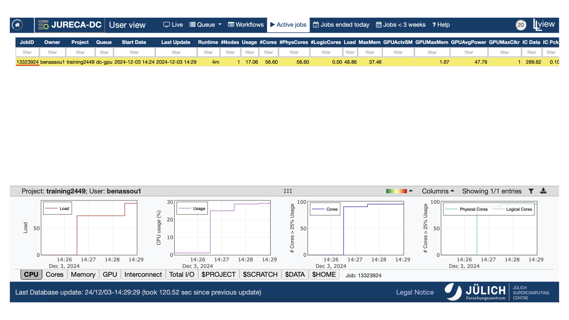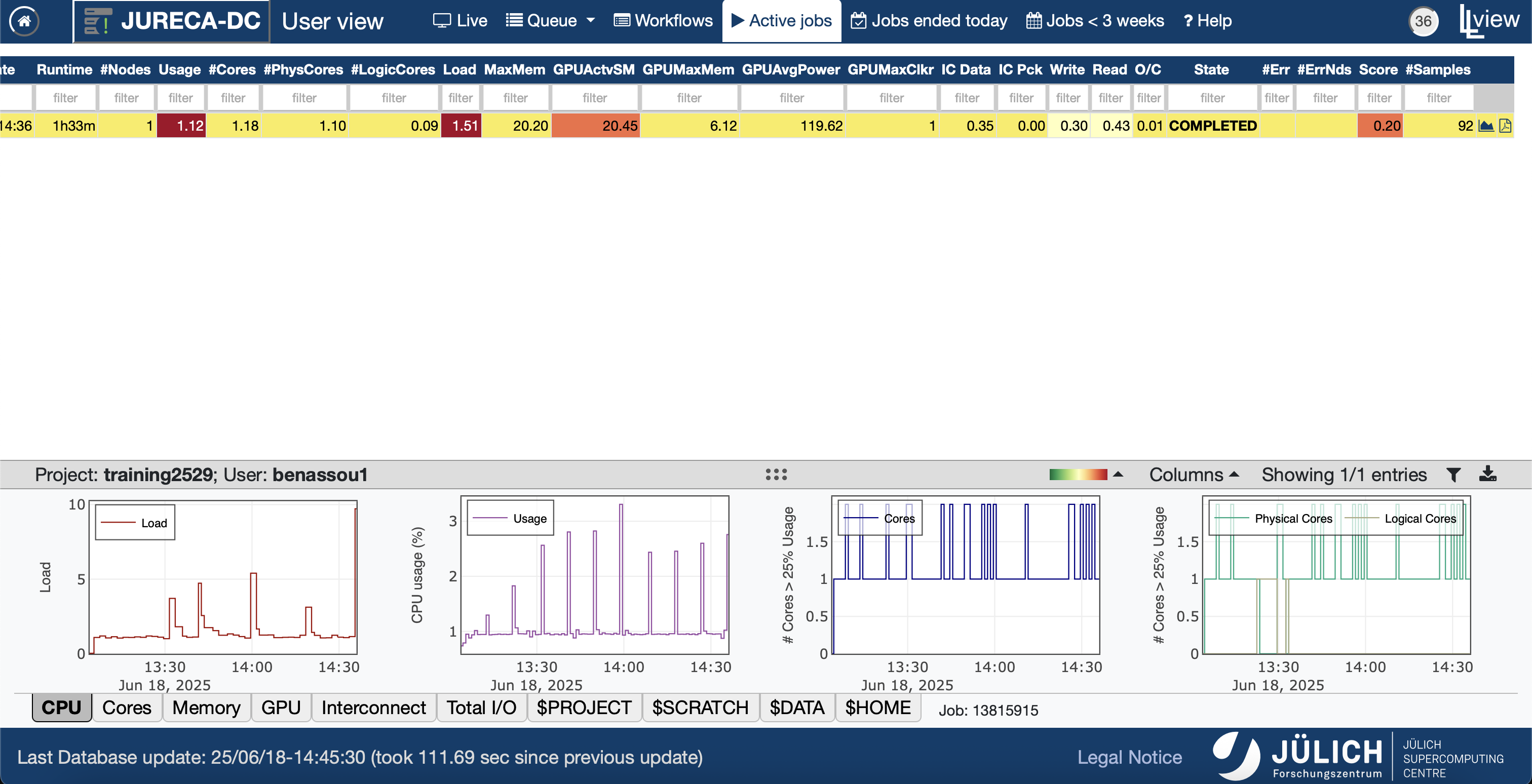 Let’s have a look at our job using llview again.